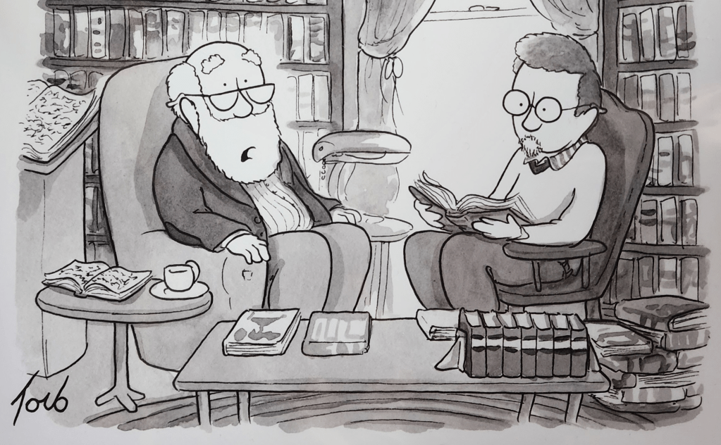 ㅤ”Those do don’t study history are doomed to repeat it. Yet those who do study history are doomed to stand by helplessly while everyone else repeats it.” The caption of my all-time favorite cartoon by the New Yorker writer and cartoonist, Tom Toro. I recently discovered he sells autographed prints of his cartoons on his Etsy store and sure enough, I bought one!