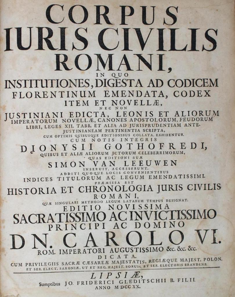 ㅤThe Corpus Juris Civilis, meaning “Body of Civil Law,” is the modern name for a collection of fundamental legal works enacted between 529 and 534 CE by order of the Byzantine Emperor Justinian I. Directed by Tribonian, this comprehensive work was intended to be the sole source of law and initially comprised three parts: the Code (a compilation of imperial enactments), the Digest or Pandects (an encyclopedia of extracts from Roman jurists), and the Institutes (a student textbook introducing the Code). All three parts were given the force of law, and subsequent new laws enacted by Justinian are now considered a fourth part, the Novellae Constitutiones.